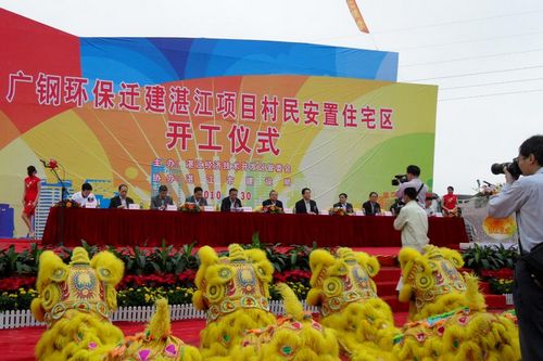 随着湛江市委书记陈耀光一声“开工”令下,顿时礼炮响起、礼花飘洒、彩狮腾跃,广钢环保迁建湛江项目村民安置住宅区工程正式开工。一万余名东海岛搬迁村民,将在不久的将来,住进安全舒适的生活小区。