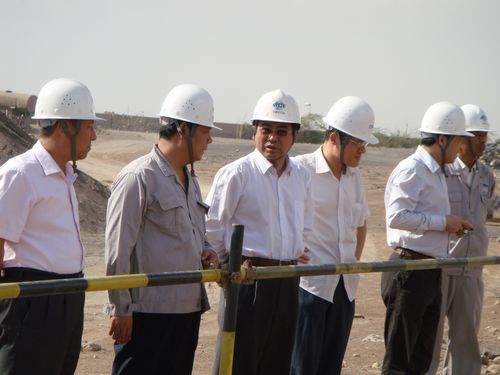 公司总经理助理、海外事业本部总经理蔡进和也门巴吉尔水泥厂项目经理彭仕柱、总工陈明宝陪同视察。