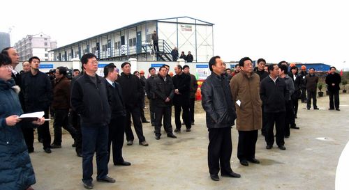 226下午,蚌埠市委书记陈启涛率领市委、市人大、市政府、市政协及市有关部门负责人和四区三县四大班子一行共70余人,冒雨来到十七冶蚌埠大学科技园项目施工现场进行观摩。