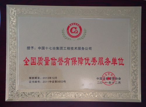 新年伊始,十七冶工程技术服务公司在中国设备管理协会开展的全国质量信誉有保障供应商的评审工作中,荣获“全国质量信誉有保障供应商”荣誉称号。