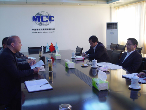 在物流与装备成套公司,王董事长听取了崔逊斌经理的工作汇报,并与公司班子成员就企业转型进行了交流。