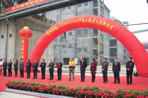 1218上午,由十七冶水泥工程技术公司承建的芜湖海螺2×12000T/D水泥熟料生产线A线工程点火成功,顺利投产。繁昌县县委书记汤春和、县长贺东、县纪委书记程邦龙、芜湖海螺董事长柯秋璧、副总工程师李乐意、外方专家IKN、伯利休斯代表和十七冶水泥工程技术公司副经理曹宗国等施工单位代表应邀出席投产庆典仪式。