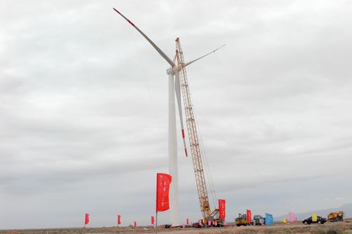 三峡新能源金昌西滩风电项目首台风机吊装成功