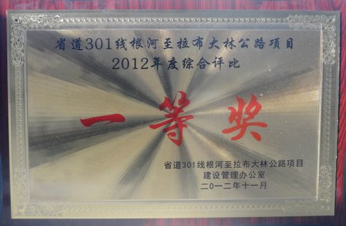 1117上午,在内蒙古自治区根河至拉布大林公路项目业主举行的根拉公路2012年度施工单位综合评比表彰会上,十七冶路桥工程技术公司内蒙根拉公路GLTJ-8标项目部荣获综合评比一等奖