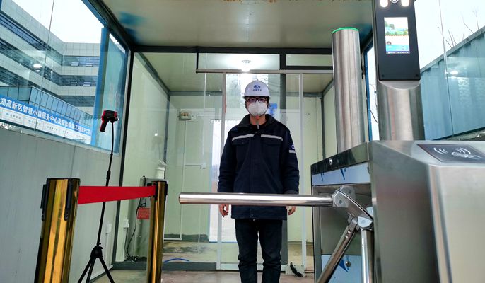3月3日,中国十七冶集团新研发的一项“黑科技”新产品——“装配式快速测温净化舱”在马鞍山慈湖智慧小镇项目亮相。这款产品安装于员工入口处,集红外测温、人脸识别、超声波消毒、警报联防联控四大功能为一体,能够大大提高进场员工的进场效率,最大程度减少人员聚集接触,为项目防控疫情增添了“利器”。