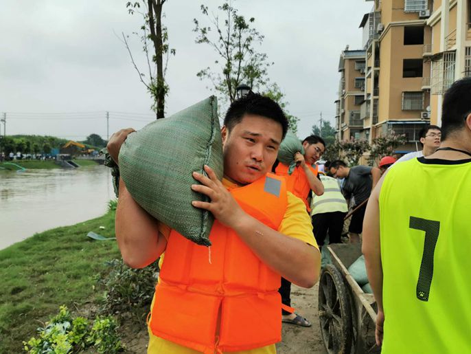 7月19日,项目安全员胡骁带领青年抢险突击队逆行赴险,马不停蹄地奔赴博望河、丹阳湖等多地参加抗洪抢险,冲在防汛第一线。由于丹阳镇黄坝村由于地势低洼,土质极其疏松,又紧邻河流,决堤风险极大,是一块难啃的“硬骨头”。队员们在第一时间奔赴任务区,扛起沙袋不停的往复,在沿河岸堆砌沙包,对堤坝进行加固,经过连续五个多小时的连续奋战终于完成堤坝加固任务。连轴转的作业让队员们手上磨出了许多水泡,可面对汛情的紧要和关键时期,他们顾不上休息,裹着一身泥水,又火速投入到了堤坝巡察任务。