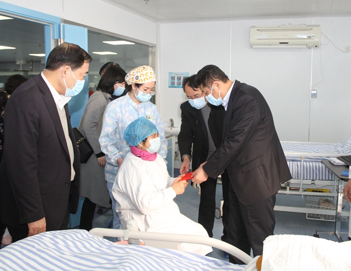 在十七冶医院,喻世功董事长一行看望了仍处于康复治疗的十七冶扶贫干部刘金海,详细了解了病情及治疗情况,向刘金海同志家属表示亲切慰问,代表公司和公司党委送上温暖的新春问候和慰问金。喻世功董事长表示,刘金海同志为扶贫事业倾心倾力,鞠躬尽瘁,是十七冶的好干部、好同志,希望家属安心治疗,鼓励家属坚定信心,照顾好病人和家庭,保重好自己的身体。党组织永远是后盾和保障,公司和十七医院将全力以赴帮助刘金海同志渡过难关。家属对组织的慰问和关心表达了深深谢意。