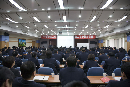 一样的精彩,一样的深邃;在道中悟道,在知中求知。3月28日,在十七冶深入学习实践科学发展观活动第二次专题培训班上,公司董事长、党委书记康承业再次走上讲台进行了两场专题授课。公司领导王建国、喻世功、彭毅忠、唐灶荣、尹似松、尹万云到课;公司总经理助理、副三总师,各专业公司、子公司领导班子成员和学习实践活动领导小组办公室主任,直属项目部经理、党工委书记和公司总部室主任以上人员近200人参加了培训。