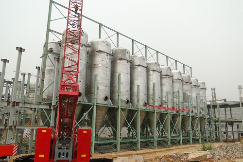 莱钢煤气净化工程罐体提前完成吊装
