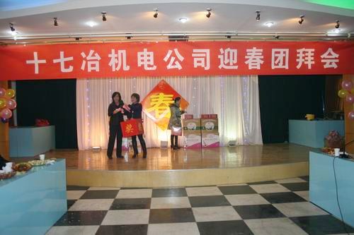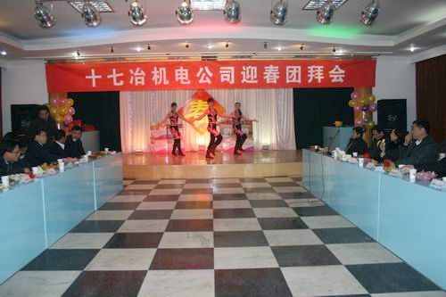 欢声笑语辞旧岁,载歌载舞迎新春。212号下午,机电公司四楼会议室张灯结彩,喜气洋洋,2010年迎春团拜会在这里隆重举行,公司领导与各工程处主任、项目部经理以及机关部室负责人近50余人欢聚一堂,共同庆祝一年来的劳动成果,展望新一年的美好前景。