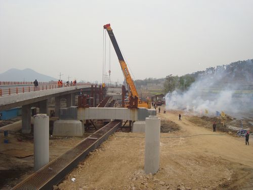 48上午908分,随着160T220T两台汽车吊将90m、重102T的钢箱梁缓缓抬起并成功起吊到阳湖塘大桥边桥上行桥2#墩~3#墩钢支架上时,由十七冶工程管理公司承建的市阳湖塘大桥边桥钢结构安装已全面展开施工,同时也标志着大桥建设已进入一个新的施工阶段——边桥钢结构安装。