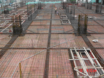 为了确保工程质量和施工安全,项目部成立了以项目经理为组长、项目总工和专项施工负责人为副组长的“海螺大厦预应力大梁施工技术攻关小组”,制定了模板、钢管架、预应力大梁张拉专项施工方案。施工中,项目经理、总工、技术员、施工员紧密协作,并步步紧跟一线班组监督指导,层层把关,将“高效严谨,精细务实”的企业作风贯穿于施工全过程。连日来,芜湖项目部在劳动力紧张、天气高温的情况下,攻关施工紧张而激烈,员工们每天工作近11个小时,工段与工段、工段与班组、班与班之间既紧密协作,又互相较劲赶超,使攻关施工循序推进。