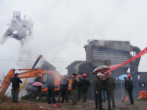 15上午1018,在风雨交加,绚丽的礼花和爆竹声中,萍钢集团萍钢公司450m3高炉工程顺利开工。