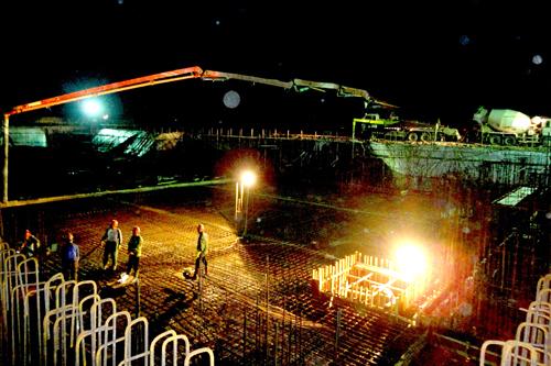 92919:00,蚌埠大学科技园工程A厂房南楼开始浇注混凝土底板。