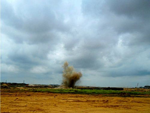 6月21日中午,随着“轰”的一声巨响,十七冶承建的湛江钢铁场平四标工程玄武岩爆破顺利结束。 自2009年8月22日实现首次爆破以来,十七冶场平工程项目部把玄武岩爆破作为安全工作的重中之重,成立了QC小组,针对爆破施工安全开展活动。为确保施工顺利进行,爆破作业人员查隐患、定措施、责任到人,安全教育面达100%,方案执行率100%,使得玄武岩爆破安全自始至终处于受控状态,受到了业主、监理的一致好评。 据悉,该工程共实施玄武岩爆破245次,爆破玄武岩约264万立方米。