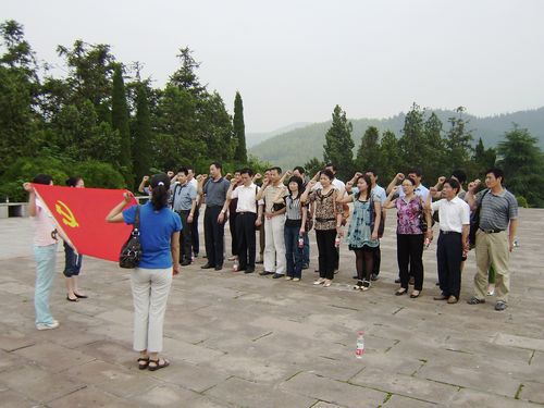 全体党员伫立在革命烈士纪念碑前,面向鲜红的党旗,庄严地举起右拳,重温入党誓词。随后党员们瞻仰了烈士陵园,参观革命烈士纪念馆。这次活动让大家再次回味了当年入党的情景,增强了党员的责任感。活动后全体党员观看了党史巨片《建党伟业》,重温了党的成长历史。