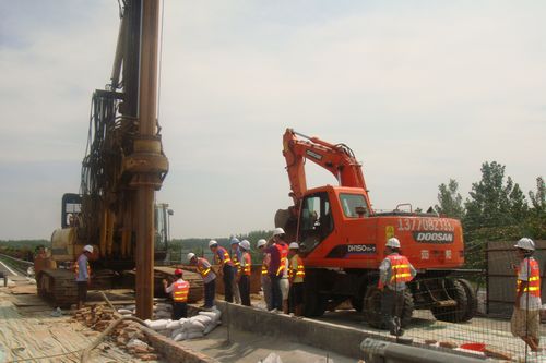 73下午,南京绕越高速公路上跨宁连高速B匝道14#墩桩基顺利开钻,标志着本标段跨宁连高速施工进入实质性主体攻坚施工阶段。