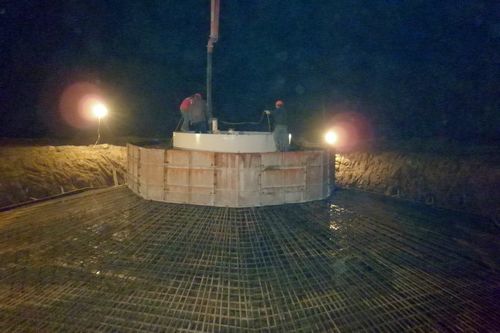 1220早晨5点,江苏国信东凌风电项目全体施工人员经过一夜连续奋战,顺利完成最后一台风机基础浇筑任务。