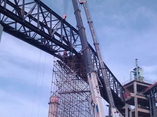 国内最大的水泥熟料生产线罗锅桁架吊装完成