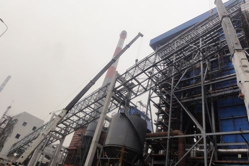 329下午,由十七冶装备制造公司承接的马鞍山山鹰纸业造纸污泥及浆渣焚烧发电机组输煤栈桥成功吊装。