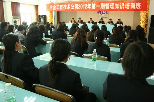 42下午,冶金工程技术公司举办了2012年第一期管理知识培训班,公司领导班子以及机关、各工程处110余名在马管理人员参加了培训。