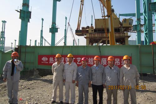 731上午1058分,新疆八一钢铁150t转炉工程工艺钢结构吊装成功。吊装仪式上,新疆八一钢铁150t转炉工程副总指挥朱君致词祝贺,集团公司项目监管部副部长赵峰、BSEE、监理、宝钢钢构等单位相关领导参加了仪式。