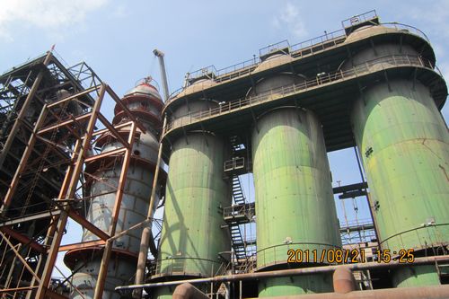 821下午 ,榆钢新建热风炉顺利封顶。该工程是在原有高炉及热风炉系统上新建两座卡鲁金式热风炉,配套450m³高炉,属于技改工程。