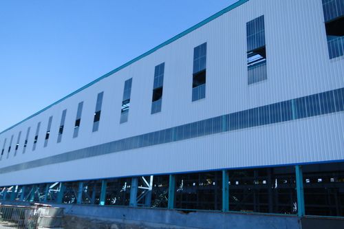 日前,达成公司轻钢结构厂承建的山东莱钢特殊钢系统产品升级技术改造项目主厂房彩板制安工程A列墙面彩板安装进展顺利。