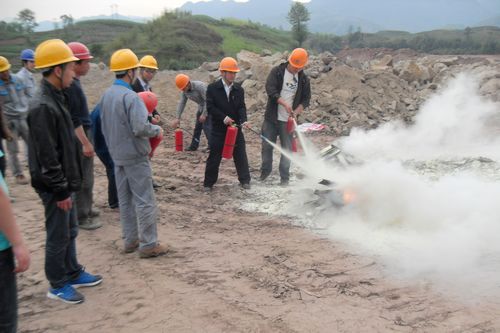 328,水泥工程技术公司重庆梁平海螺项目部与业主在施工现场举办了施工现场安全消防器材使用和演练教育活动。