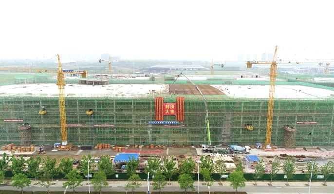 4月30日上午,由十七冶城建分公司承建的滁州南谯区省际毗邻新型功能区启动区项目2#标准化厂房顺利封顶。