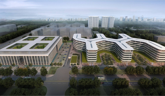 焦作高新技术创业服务中心升级改造项目位于焦作市高新区神州路与怀庆路东南方向,示范区管委会所在地块,北侧为双拥主题公园与焦作科技总部新城,规划用地分两期开发,一期分为A、B两地块,面积分别为36508.98平方米(54.76亩)与8340.61平方米(12.51亩);二期用地面积为44849.59平方米(60.21亩)。目前在建的一期两个地块分别建有4栋建筑和2座地下汽车库,总建筑面积为137725.23平方米,其中政务中心(含交易中心)建筑面积为35157.35平方米,地上四层地下一层,框架结构。