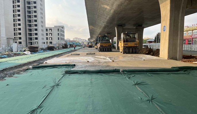 本次地面辅道摊铺段全长655米,每侧机动车道宽度11米,非机动车道宽度4.5米,机动车道水稳厚度为18厘米,非机动车道水稳厚度为20厘米。为确保水稳摊铺施工的顺利进行,项目部高度重视,努力克服工期紧、任务重等不利因素影响,积极筹划,真抓实干,不断提高施工效率。采用科学的管理方式,对施工目标任务进行分解,合理调配人员及机械设备,规范工艺流程,严格保障施工质量。在摊铺施工中,项目部始终将安全文明施工放在首位,强化过程控制,明确分工,责任到人,努力营造安全的施工环境。此次水稳摊铺的顺利进行,为项目6·30节点目标的顺利实现打下坚实基础。