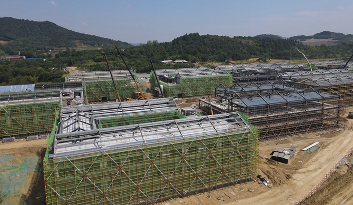 项目自开工伊始,项目建设单位、管理单位、施工单位积极谋划,合理组织,克服了疫情、高温、地质条件不利等诸多困难,在不到两个月的时间内,完成了20万立方米土方平整,18000米桩基基础施工以及5000吨钢结构,10万多套高强螺栓与栓钉的锚固与焊接,757根钢柱、2810件钢梁的吊装。项目部在建设过程中严把疫情防控、质量安全关,多措并举,如期完成这一重要节点,为后续施工的顺利完成提供了有效保证,确保了8月份顺利交付的总进度目标。