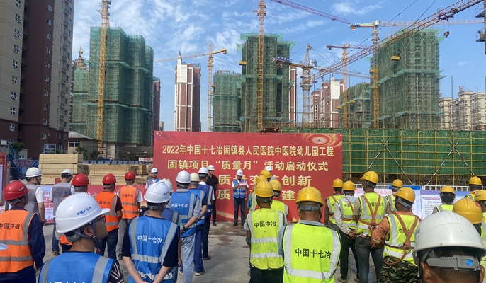 9月2日,中国十七冶集团管廊分公司在固镇县人民医院中医院幼儿园项目举办以“推动质量变革创新,促进质量强国建设”为主题的“质量月”启动仪式,管廊分公司总工程师刘守诚、固镇县重点中心代表赵延肖、合肥工大监理总监王磊、项目部全员、协作单位及作业人员参加。