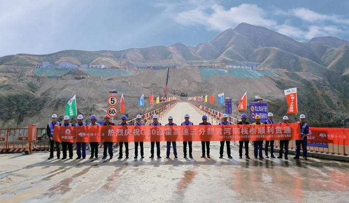 10月1日上午,由中国十七冶集团公路工程技术分公司承建的连霍高速公路兰州清水驿至忠和段扩容改造工程施工总承包项目首座跨黄河钢栈桥顺利贯通,在经过四辆满载着砂石,单辆重达40吨的运输车进行荷载试验后,正式具备通车条件。此次钢栈桥顺利贯通,打通了跨越黄河东西两岸的施工便道,为主体工程建设搭建了一条输送血液的“施工生命线”。