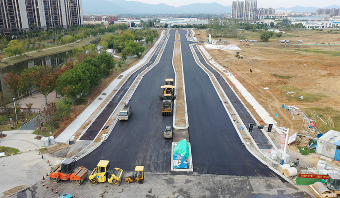 马鞍山博望区井冈山路、皖江路沥青摊铺完成