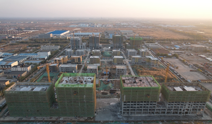 东营高新区创业产业园项目占地约184亩,总建筑面积约20.4万平方米,主要建设功能建筑48栋,其中多层科研楼40栋、高层建筑6栋、配套楼2栋,是集商业、办公、酒店为一体的大型创业产业园。项目建成后,将成为高新区创新企业培育基地、技术成果转化交易平台,助推科技成果转化和区域经济高质量发展。北区2-B#楼地上建筑面积22317平方米,1-2层为企业办公楼,层高4.2米,分多区域上下办公,3层以上为人才公寓高层建筑,层高3.9米,地下车库人防区域面积3038平方米,涉及人防门框安装、套管预埋、水电管线预埋等重点工序。目前,该项目6栋高层主体结构封顶完成,14栋多层外装施工完成,10栋多层施工至二层,6个多层基础正在开挖,同步进行二次结构、空调、消防、水电桥架安装等工序。