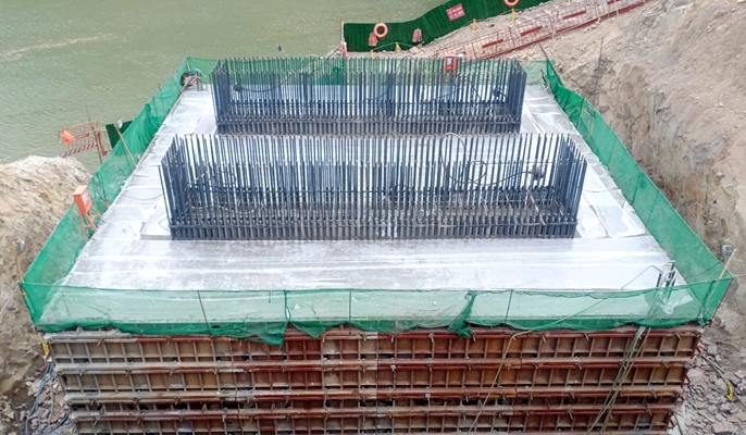 为确保全桥最后一个大体积混凝土承台顺利浇筑,项目部提前策划、精心部署,在技术管理方面,多次组织承台施工技术方案及安全生产交底,优化施工工艺,细化工序措施,确保每个作业人员熟练掌握规范施工要领及安全防护措施;在材料选配方面,合理优化砼配合比,科学减少水泥用量,严格退场不合格品,提前调度材料资源,确保拌和站点稳定运行;在质量控制方面,通过冷却水单进双出的方式实现24小时循环温控,持续半月不间断注水,确保进出水管温差在5-10度之间。同时,项目部通过样板引路的方式,对钢筋绑扎、预埋件安装、混凝土配比、浇筑速度及振捣过程进行严格调试控制,为承台保质保量浇筑提供有力保障。项目团队将一如既往保持良好的施工态势,戒骄戒躁、凝心聚力,以开局即决战,起步即冲刺”的姿态加快施工进度、冲刺年度目标,力争安全高效地完成各项施工任务。