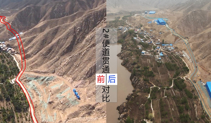 三分部项目位于甘肃省皋兰县及榆中县交界处,由南向北建设大河坪隧道、什川黄河特大桥、上河坪隧道等。项目便道共分为1#、2#、3#三段,总长度为8255米,本次贯通的2#便道长约1公里,便道全线贯穿兰州市皋兰县什川镇长坡村垮垃圾塔、八道湾崖山脉,所经区域山高坡陡、沟谷纵横。便道全线贯通后将为施工机械设备、建筑材料进场提供便携的交通条件,大幅提升大和坪隧道、上和坪隧道、黄河特大桥、上和坪大桥等关键工程的施工速率。