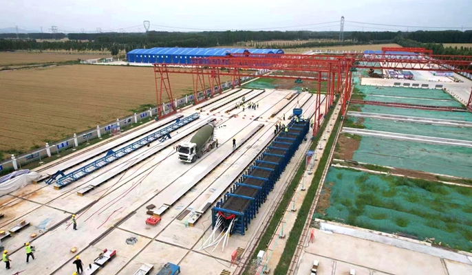 该项目位于济南至微山高速济南至济宁新机场段,采用双向四车道高速公路标准,路线全长21.948公里,设计速度120公里/小时,建设内容包含1座特大桥、19座大中桥、2座互通立交、4座分离立交、1处服务区和匝道收费站等。S104分离立交分为左幅和右幅,全长506米,单幅宽度12.75米,为主线上跨分离。此次浇筑的预制箱梁为S104分离立交左幅1-2箱梁,梁长34.89米,顶宽2.4米,底宽1米,高1.8米。本项目是山东高度“九纵五横七射多连”规划布局中连十线的北部延伸段,建成后将进一步优化山东高速网布局,对发挥路网整体效益,改善区域交通运输条件,促进山东西部经济隆起带及区域经济社会均衡发展具有重要意义。