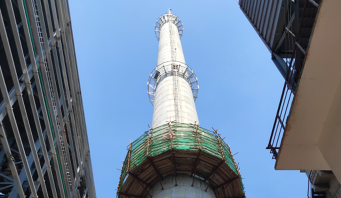 7月8日,中国十七冶冶金分公司承建的福建三明三钢本部高炉工程新1#高炉2#水渣处理烟囱成功封顶。