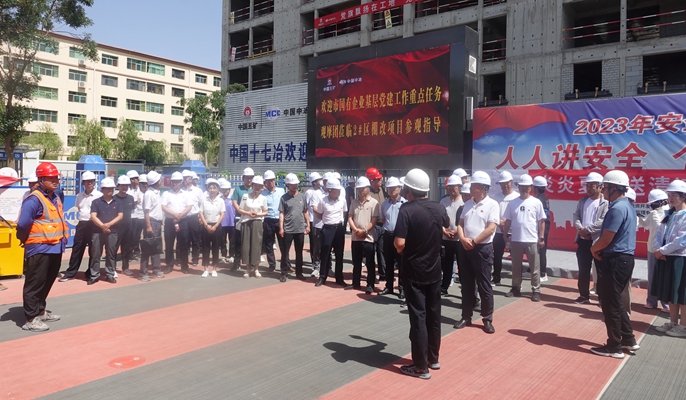 7月25日,甘肃省金昌市政府国资委副主任王宗旭携市国有企业基层党建工作重点任务观摩团,到中国十七冶建筑分公司承建的金昌市2#区棚改项目观摩调研。