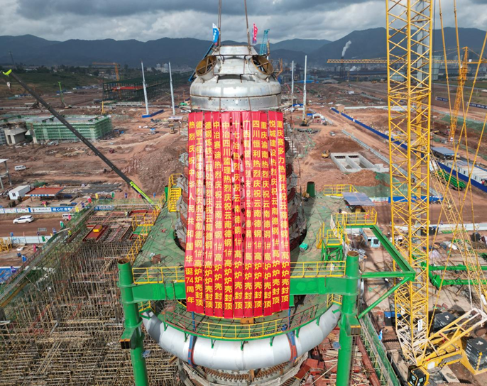云南楚雄炼铁工程1#高炉炉壳封顶