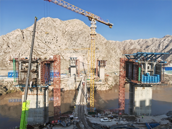 LHQZ-ZB1-3施工总承包项目标段全长7.353千米,由南向北设置大河坪隧道、什川黄河特大桥、上河坪隧道、上河坪大桥、下河坪隧道、什川隧道,路线穿越什川镇南侧山区,标段内桥隧比高达94%。其中,什川黄河特大桥前后连接大河坪、上河坪隧道,是连霍高速公路兰州清忠段扩容改造项目控制性工程、全线亮点工程之一。其主跨160米横跨黄河,桥型布置为(90+160+90)米预应力混凝土波形钢腹板连续刚构,左幅桥长350米,右幅桥长349米;桥梁主梁采用单箱单室变截面波形钢腹板预应力混凝土连续箱梁,主墩采用双肢实体墩,全桥共有四座主墩,四个“0号块”箱梁。截至目前,右幅1号墩“1号块”箱梁已完成挂篮安装及预压;左幅1号墩“0号块”箱梁结构预应力束已全部张拉完成,步入压浆施工;左幅2号墩“0号块”箱梁结构预应力孔道压浆已全部完成,“1号块”箱梁挂篮安装完成,步入预压阶段。