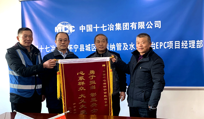 1231日,怀宁县宁兴花园业委会一行来到中国十七冶集团管廊工程技术分公司怀宁市政工程项目部,向项目部赠送了一面印有“勇于担当 彰显央企本色;心系群众 大义大爱并举”的感谢锦旗,并同项目部人员进行了亲切的交谈。