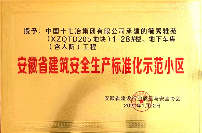 此次荣誉的获得,是省建设行业安全与质量协会对合肥毓秀雅苑项目安全文明施工、标准化建设工作的肯定和鼓励。项目部将以此次获奖为契机,充分发挥示范作用,打造十七冶“高端城建”品牌形象。