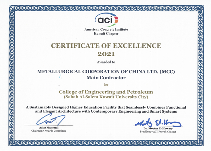 十七冶获得美国混凝土协会科威特分会两项大奖