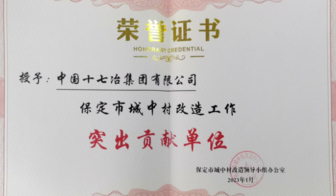 保定城改办授予十七冶“突出贡献单位”并致表扬信