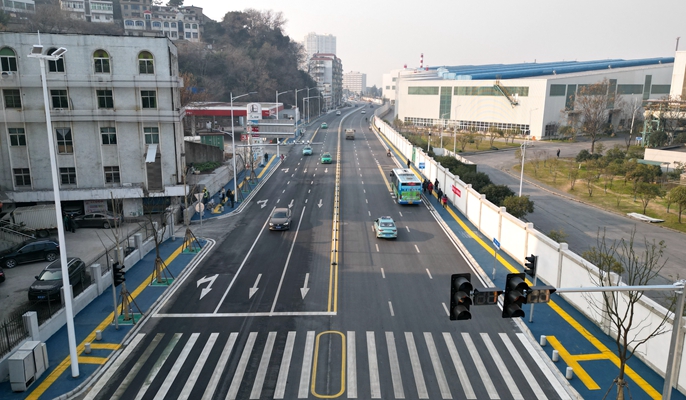 黄石大道拓宽及生态改造工程位于湖北省黄石市,西起沿江大道设计段,自西向东终于河西大道标准段,由现状双向四车道拓宽为双向六车道,包含排洪渠、通讯迁改、雨污管道等工程,全长7.29公里。其中西塞山住保局至冶钢制氧厂段3.1公里道路已于12月28日顺利通车,大幅提升了区段路况面貌与通行能力,对畅通城市内循环、增强交通承载能力具有重要意义。