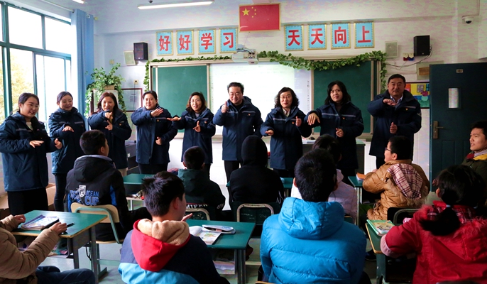 大家与孩子们在教室内通过和孩子们玩游戏、手绘存钱罐、折叠“纸鹤”等方式,亲密互动,为学习和生活在学校的残疾儿童们带去心灵上的慰藉,一方面给特教学校学生的课余文化生活增添一份乐趣,另一方面在游戏指导、帮扶过程中,使特教学校的孩子们感受到社会、央企的关爱。孩子们用纯真的笑容寄托出他们对生活的热爱和未来的憧憬,用手语表达出对社会的感恩。